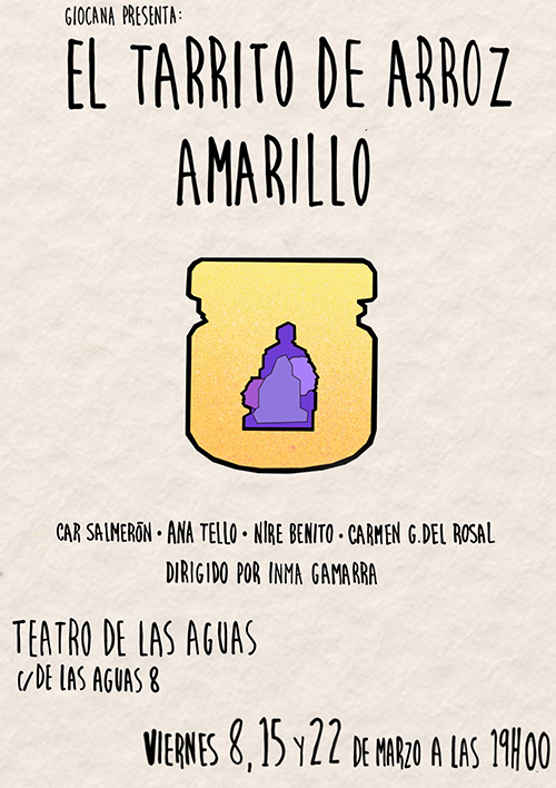 Descripción: Co-productora, actriz y co-dramaturga de “El tarrito de arroz amarillo”, estrenado el 8 de marzo del 2019 en el Teatro Las Aguas.